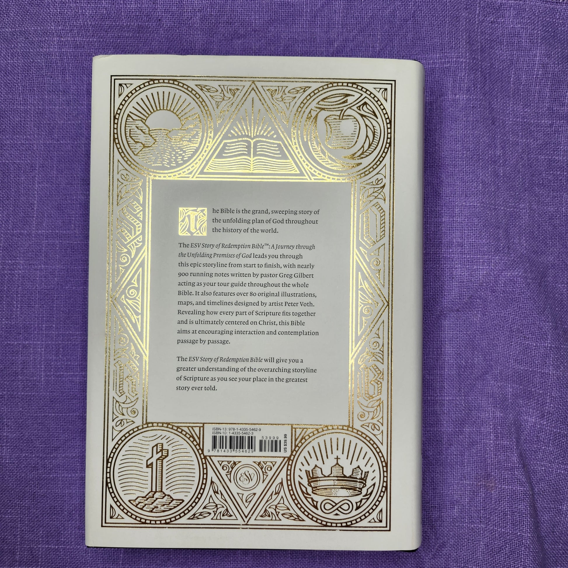 The ESV Story of Redemption Bible: A Journey through the Unfolding Promises of God leads readers on a journey through this storyline from start to finish, with conversational commentary written by pastor Greg Gilbert interspersed throughout the full ESV text.