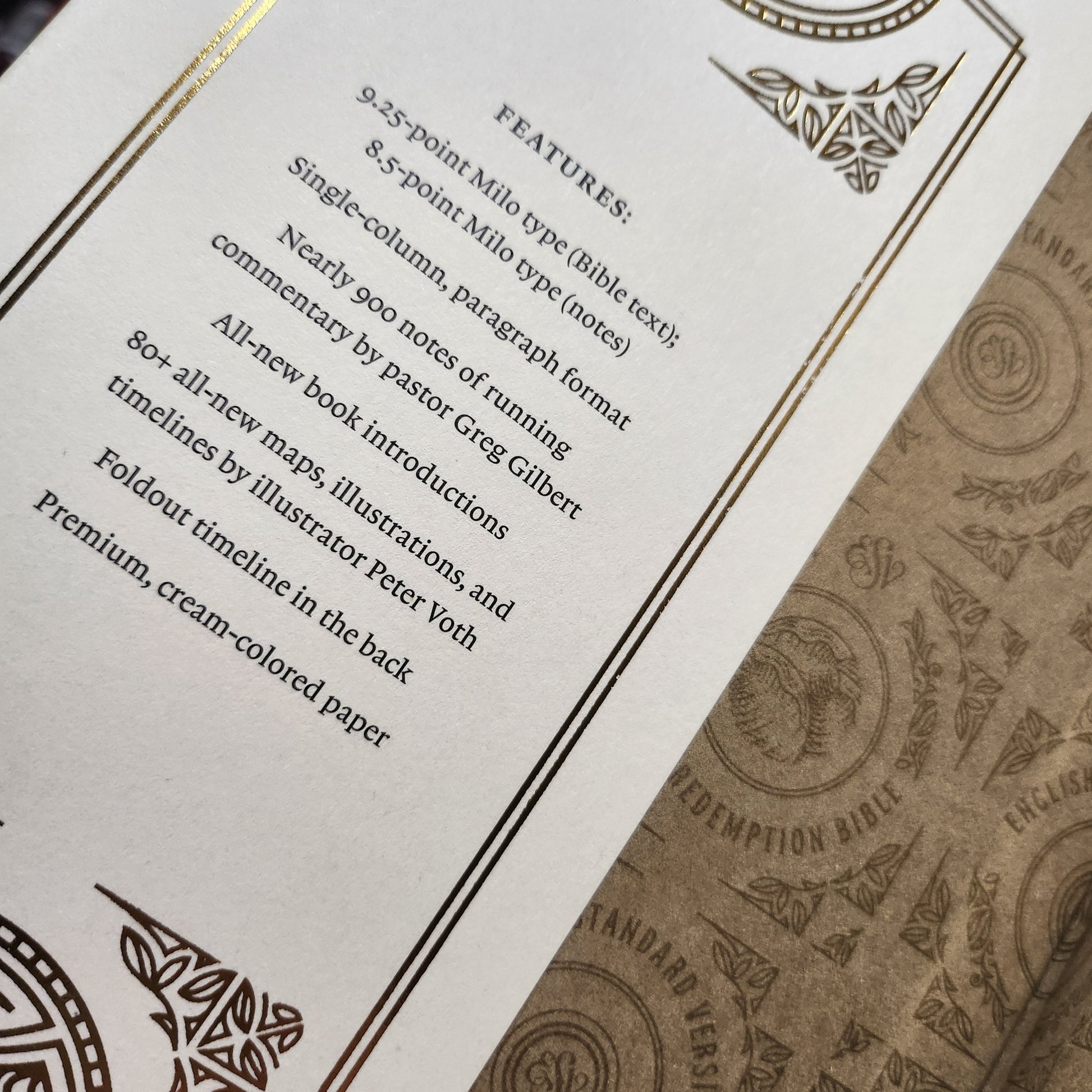 - 9.25-point Milo type (Bible text); 8.5-point Milo type (notes)